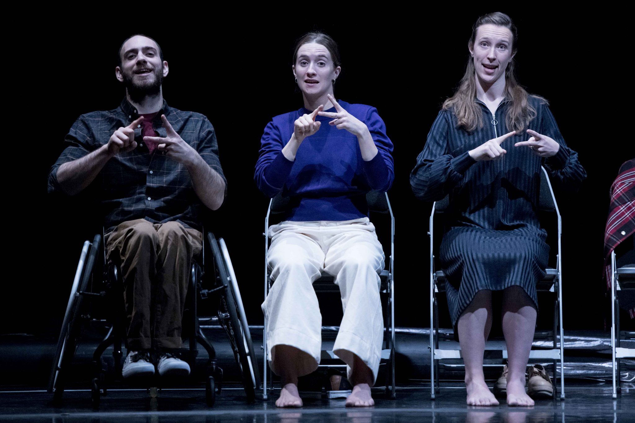 Let’s Talk About Dis, a fantastically smart piece by rising choreographer Hetain Patel, sets this inclusive company moving and speaking a range of languages, signing and singing, talking about and over each other.